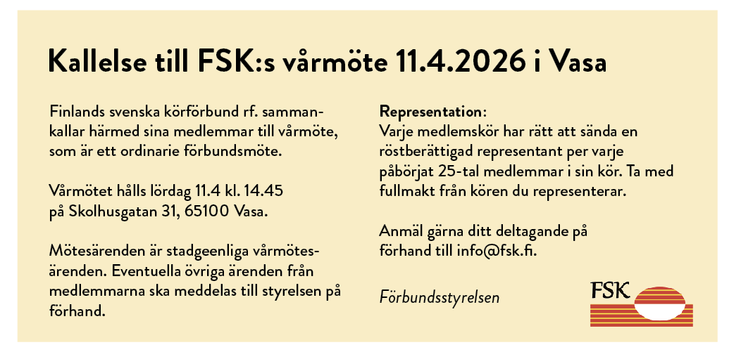 Finlands Svenska Körförbund r.f. är en riksomfattande organisation för de finlandssvenska blandade körerna. Förbundets verksamhetsområde är hela Svensk-Finland. Förbundet fungerar som ett självständigt specialförbund inom Finlands svenska sång- och musikförbund r.f. |